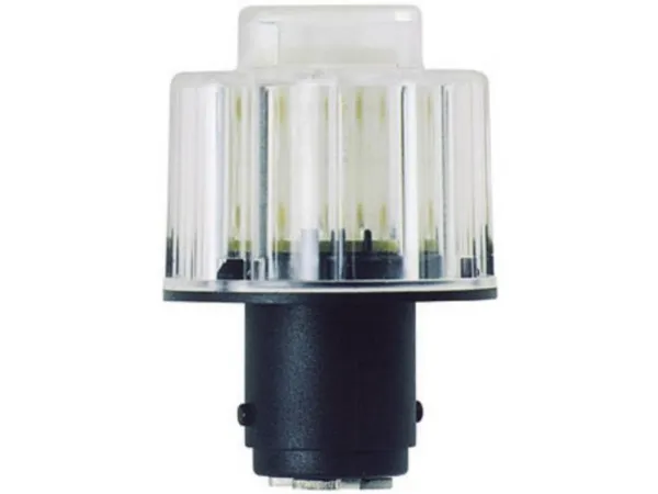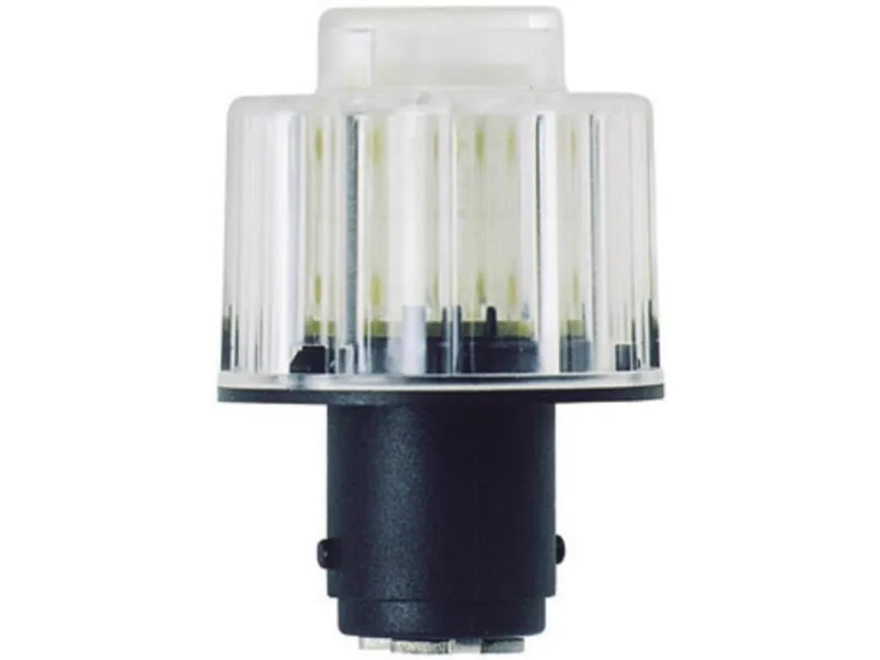 LED-lampe BA 15d Kabinet: PA-GF, slagfast · Kuglehoved: Pc, transparent. Ekstremt lang levetid på op til 50.000 timer · Chip-on-board-teknologi · Stødfast og ufølsom over for vibrationer · Også udstråling opad · Høj lyseffekt med optimeret prismeform.