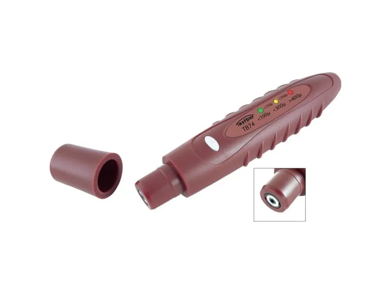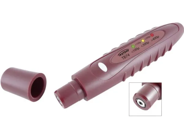 Testboy® 74 laktester Slag- og brudsikkert kabinet · laklag test fra 0 - 400µm · enkel visning via LED'er · Det lag tykt måleapparat testoby® 74 udmærker sig ved sin høje målepræcision samt sin absolut enkle og sikre håndtering. Til måling af alle magnetiske metaller. Lynhurtig måling og nem visning af måleværdier via LED'er.