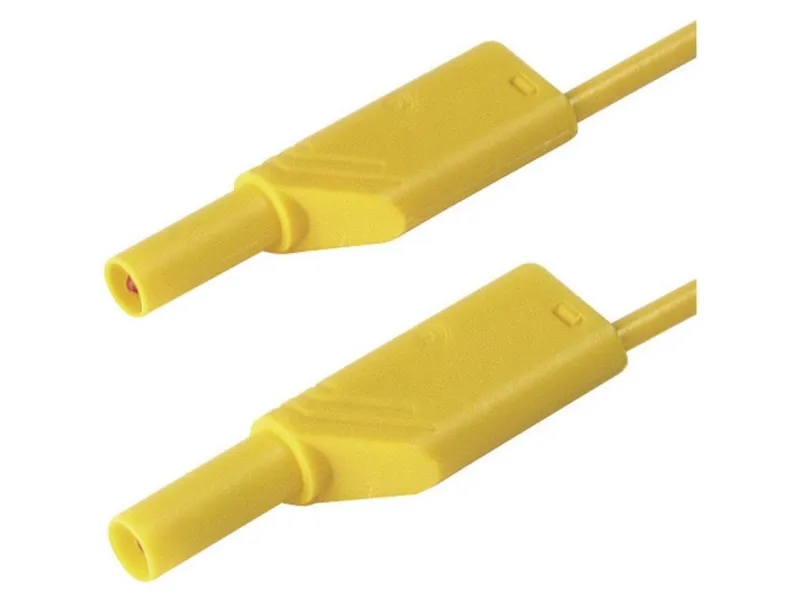 4 mm sikkerhedsmåleledning, silikone, 2x stabelbare stik, 100 cm Højfleksibel, dobbeltisoleret ledning. Indbygget farveindikator for nem registrering af skader på isoleringen. Berøringssikker måleledning iht. IEC 61010, dobbeltsidet sikkerhedsstik med 4 mm diameter, og 4 mm tilslutning til tårnstikkonstruktioner. Kontaktfjeder af kobber-beryllium, forniklet. Højfleksibel, dobbeltisoleret silikoneledning, bestandig mod berøring med loddekolbe, gribemuffe og ledning og er trædesikker. Indbygget farveindikator for nem registrering af skader på isoleringen. Silikonesikkerhedsmåleledning 1000 V/CAT II, stabelbare stik, dia. 4 mm, 100 cm