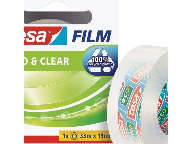 Tesafilm Eco & Clear kontortape - 19 mm x 33 m - transparent