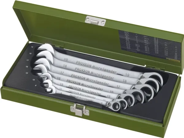 Ring-gaffelnøglesæt med skraldefunktion MicroSpeeder 7 dele