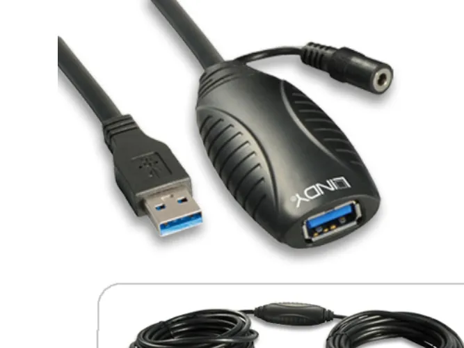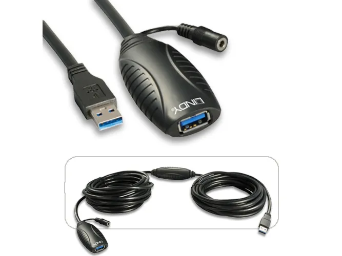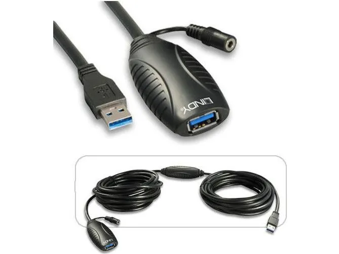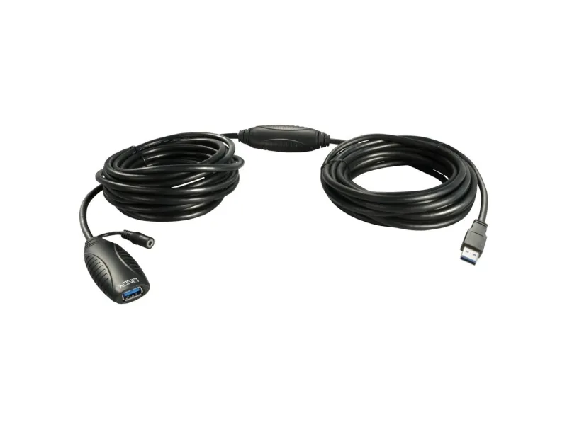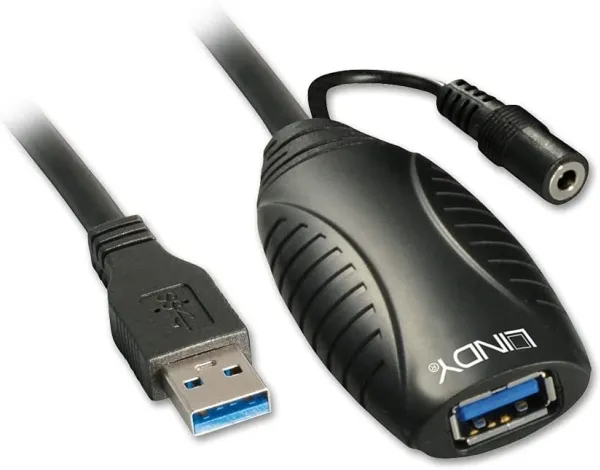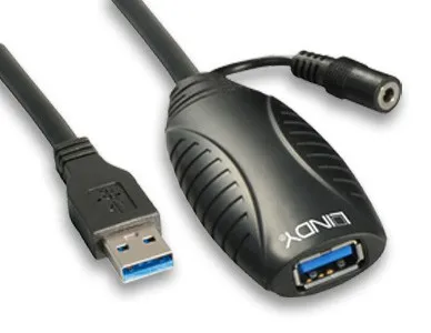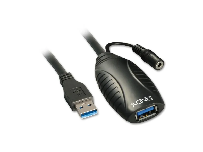 10 metre USB 3.0 Active Extension Repeater Lead_x000D_ Supports transfer rates up to 5Gbps_x000D_ For even greater distances simply connect 2 cables in series_x000D_ Plug & Play_x000D_ 2 year warranty_x000D_ _x000D_ The Lindy USB 3.0 Active Extension Cable uses built-in active electronics to extend the cable length of a USB 3.0 device by an additional 10m whilst continuing to support data transfer rates of up to 5Gbps. With its USB A male and USB A female connector it allows Type A devices such as storage devices, webcams and other Type A devices to be connected at longer distances to PCs, laptops and tablets, while also ensuring flexible positioning. Up to 2 extension cables can be chained together to achieve a distance of 20m._x000D_ _x000D_ The Lindy USB 3.0 Active Extension Cable is compatible with all USB Type A equipped computers. With plug and play functionality, this extension cable can be installed quickly and with minimum fuss, ideal for both professional and first time users. The USB active extension cable also features a DC socket for connecting an external power supply (5V 2A, not included) when using USB peripherals which have higher power requirements._x000D_ _x000D_ Information about USB 3.0, 3.1 & 3.2_x000D_ _x000D_ USB 3.0, USB 3.1 and USB 3.2 PCs, cables and devices are all compatible with each other, when using either a USB Type A or USB Type C host interface._x000D_ USB 3.0, USB 3.1 Gen 1 and USB 3.2 Gen 1 all support data transfer rates up to 5 Gbps._x000D_ USB 3.1 Gen 2 and USB 3.2 Gen 2 both support data transfer rates up to 10 Gbps._x000D_ _x000D_