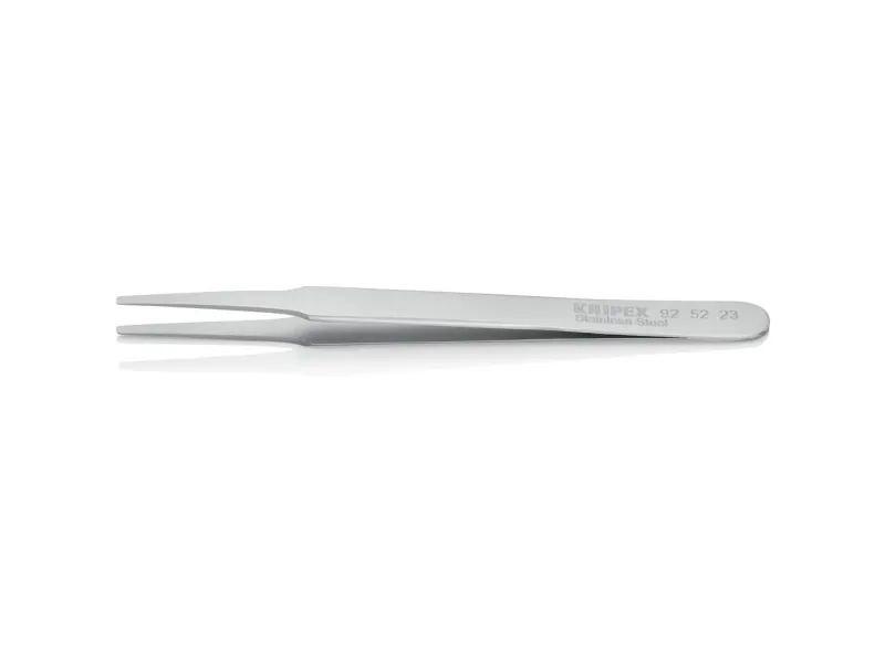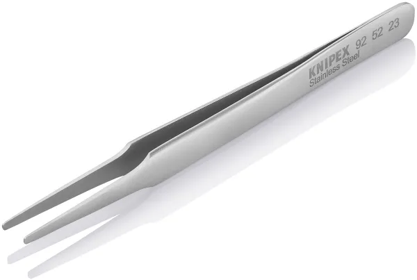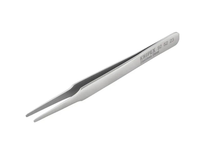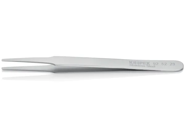 92 52 23 Universalpincet Universalpincetter er velegnet til krævende standardanvendelser og præcisionsopgaver. Et bredt udvalg af udførelser: Lige, vinklede, med glatte eller riflede gribeflader og håndtag, med nålespidser, smalle eller stumpe spidser samt forskellige længder. Til elektronikindustrien, urmagere og juvelerer. Rustfrit stål af høj kvalitet: Ekstremt robust og meget god korrosionsbestandighed mod en række atmosfæriske miljøer og mange ætsende materialer.