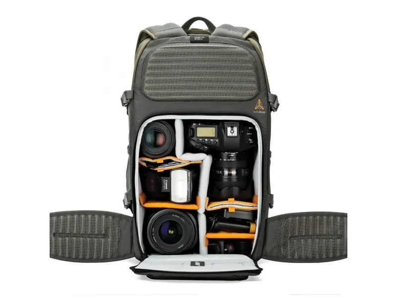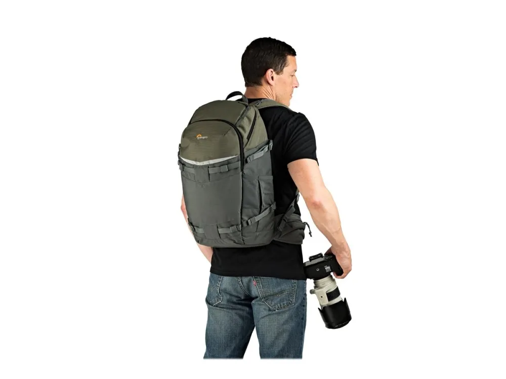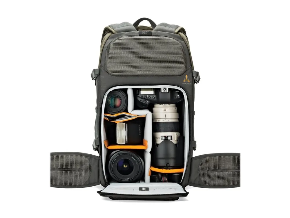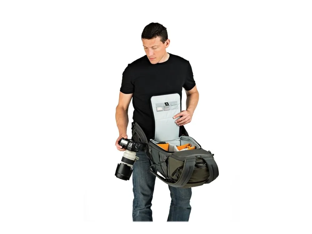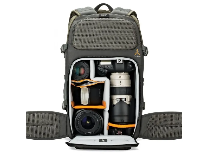 - Flipside body-side access lets you to get your gear without putting the bag down - Hinged lid to camera compartment allows easy access to gear without fully opening - ActivZone™ suspension system provides all day wearing comfort - Large open zone in top of pack for non-camera items. - Multiple attachment points allow you to scale up or down the gear you carry outside of your bag - Special edition dark green built-in All Weather AW Cover™ for extra protection from rain, snow, dust and sand - CradleFit™ padded pocket suspends and protects your tablet within the full-height back pocket - Stretch-mesh water bottle pouches on either side of bag - Zippered top pocket for quick-grab items