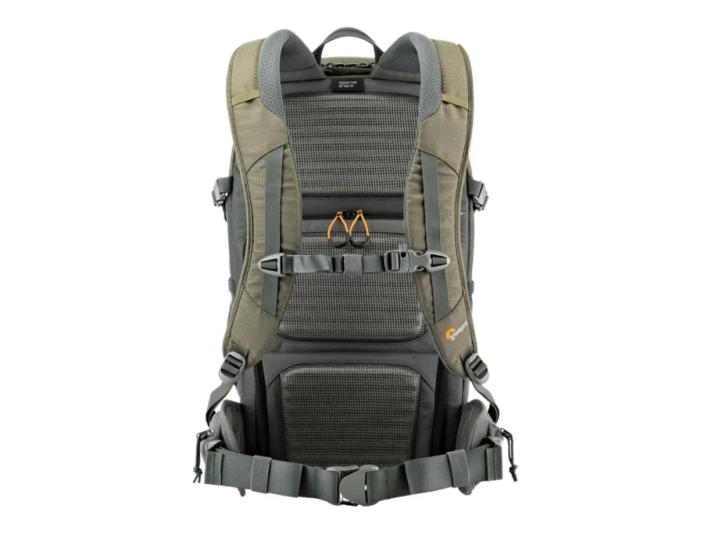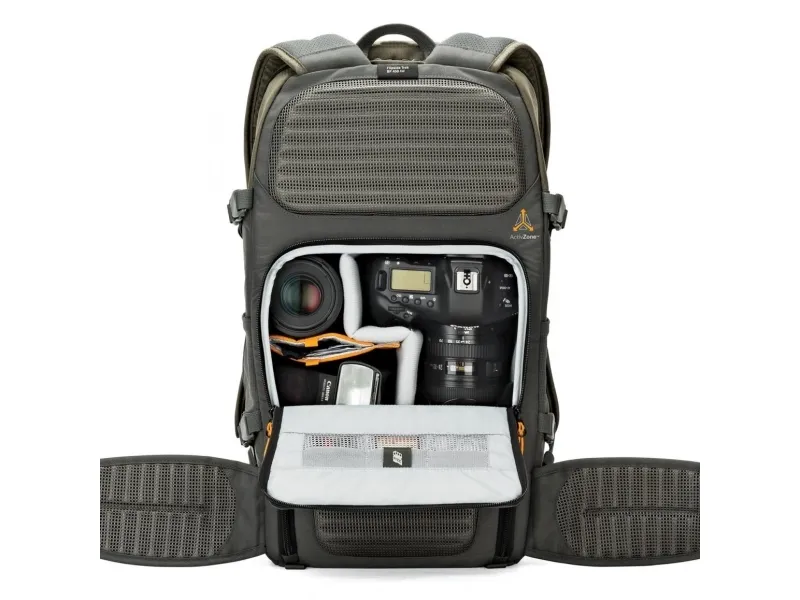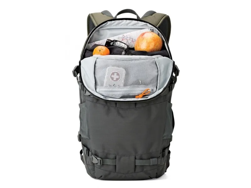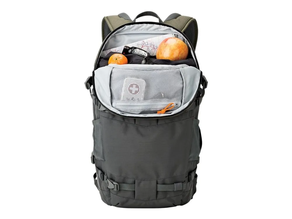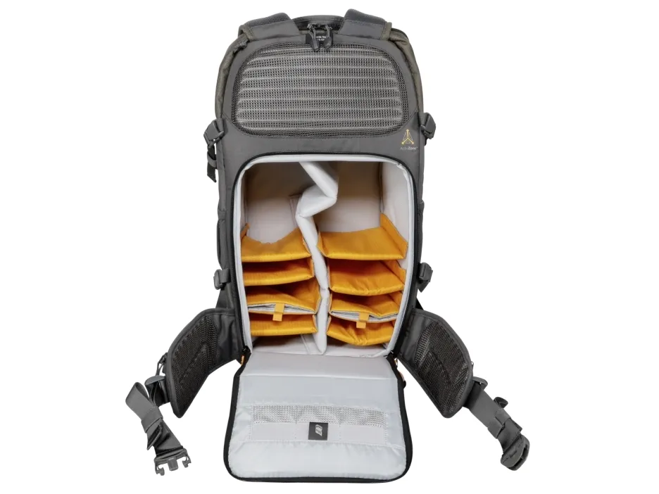 - Flipside body-side access lets you to get your gear without putting the bag down - Hinged lid to camera compartment allows easy access to gear without fully opening - ActivZone™ suspension system provides all day wearing comfort - Large open zone in top of pack for non-camera items. - Multiple attachment points allow you to scale up or down the gear you carry outside of your bag - Special edition dark green built-in All Weather AW Cover™ for extra protection from rain, snow, dust and sand - CradleFit™ padded pocket suspends and protects your tablet within the full-height back pocket - Stretch-mesh water bottle pouches on either side of bag - Zippered top pocket for quick-grab items