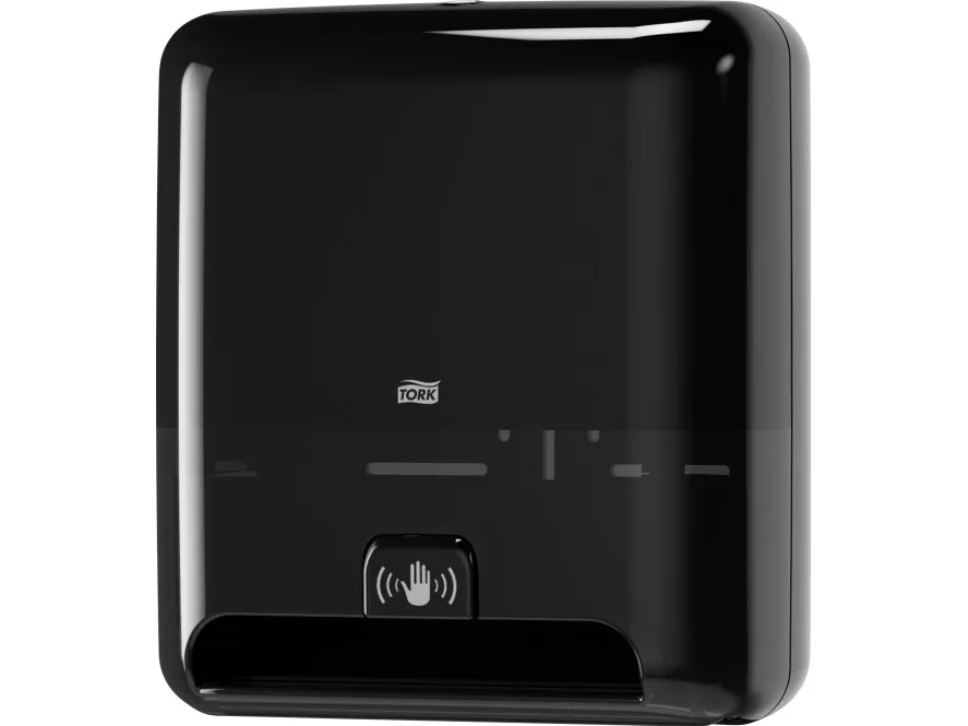 Tork Matic® sensordispenser til rulletoppere, sort H1 Dispenser til rullehåndtørpapir i funktionelt og moderne Elevation-design, passer til H1 rullekludene fra Tork Den hygiejniske, berøringsfri enkeltservietudtagning sørger for bæredygtighed og reducerer forbruget Led-niveauindikatoren på papirdispenseren signalerer, hvornår det er nødvendigt at fylde op. Med sin høje kapacitet er Papirservietdispenseren ideal til særligt besøgte vaskerum med højt antal besøgende Tork Matic-dispenseren forener effektivitet med komfort og design. Takket være sensoren kan papirservietterne fjernes enkeltvis, hygiejnisk og økonomisk. Håndklædelængde kan indstilles efter behov. Easy to Use-certificeringen sikrer nem håndtering. Den vedligeholdelsesfattige dispenser har stor kapacitet og er tilpasset til toiletter med meget trafik.