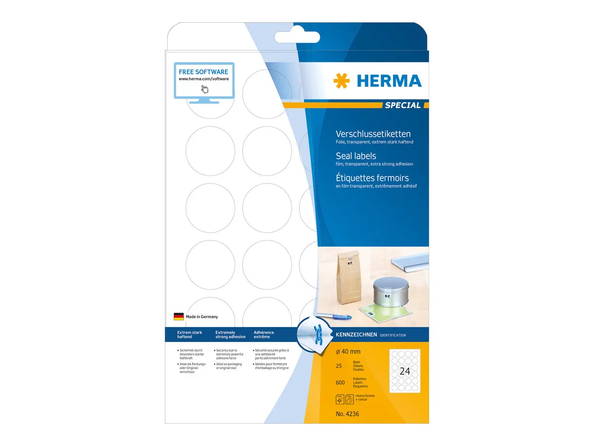 HERMA Special - sikkerhets/forseglings-etiketter - 600 etikett(er) - 40 mm rund