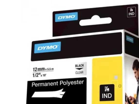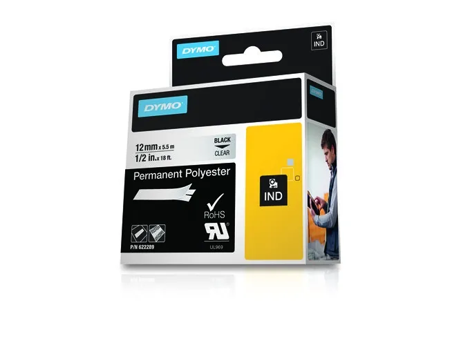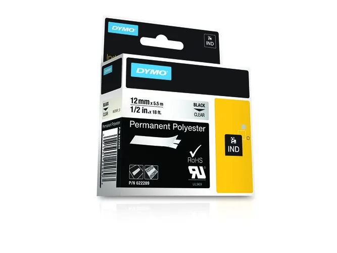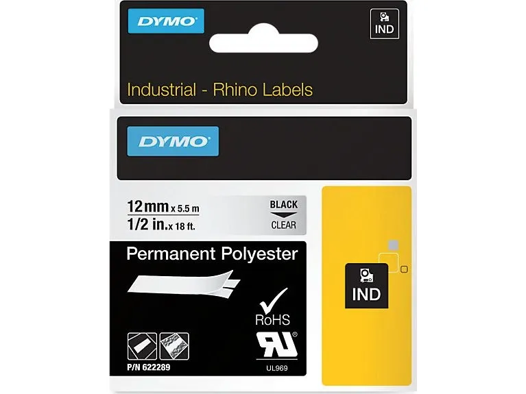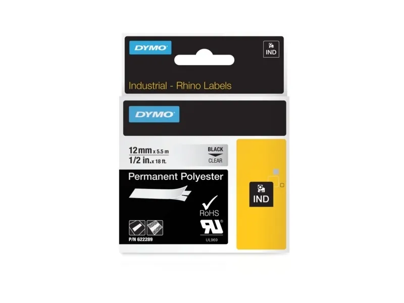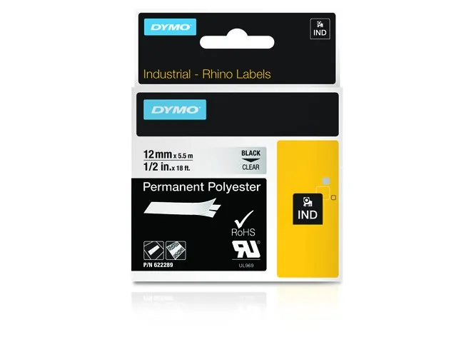 DYMO RhinoPRO Permanent Polyester - Polyester - permanet adhesiv - svart på blank - Rull (1,2 cm x 5,5 m) 1 kassett(er) tape - for Rhino 4200, 6000, 6000 Hard Case Kit; RhinoPRO