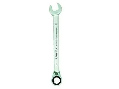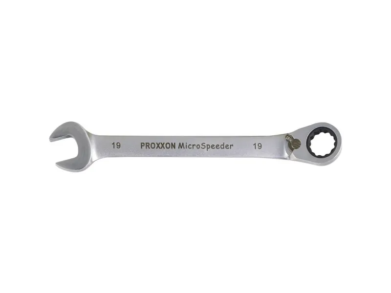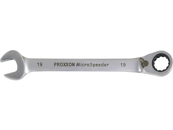 MICRO-combispeeder-PROXXON Omstilling af greb mellem højre- og venstreløb. Til skruning på plane overflade og til anvendelse ved påskruning på bolte! Perfekt ved trange pladsforhold. Den indvendige ring af højlegeret specialstål med 72 tænder skaber moment allerede ved en drejning på 5°. Det overførte drejningsmoment ligger langt over DIN/ISO. Det er ikke muligt at flytte det 15° vinklede hoved. Omstilling venstre/højre 72 fine tænder