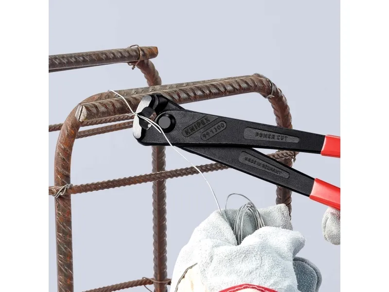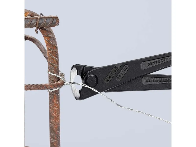 99 11 300 Kraft-bindetang 25 % kraftbesparelse sammenlignet med almindelige bindetænger af samme størrelse. også til at binde dybtliggende jern pga. den særligt slanke form. Til fastgøring af armeringsjern med bindetråd fra rulle. Snoning og afskæring af tråden i én arbejdsgang. Led med høj udveksling, derfor kun lidt belastning ved arbejdet, også ved brug af tykke bindetråde Aflastning af sener og muskulatur ved stærk dæmpning af skæreslaget efter gennemskæring af bindetråden. Skær yderligere hærdet; skærhårdhed ca. 61 HRC.
