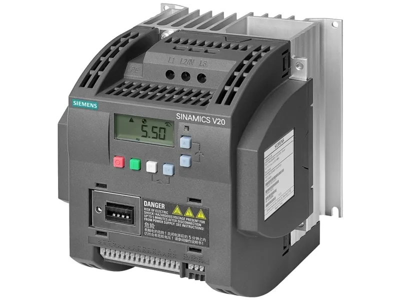 SINAMICS V20, IP20 / UL open type, FSB, A, 380-480 V 3 AC, 4,00 kW Væg- og gennemstiksmotering - begge varianter direkte kan stilles på række · Integreret uss- og Modbus RTU-interfaces · Integreret Brems-Chopper til 7,5 kW op til 15 kW · Kompakt opbygning i mindre skabe · Gennemstikningsmontage gør det nemmere at skabe køling · Kan anvendes uden yderligere indstillinger ud af emballagen anvendes · Grundlæggende betjening via den indbyggede BOP (Basic Operator panel) · Enkel integration i eksisterende systemer · Enkel integration i mikro automatiseringssystem, for eksempel med SIMATIC S7-1200 · Nem ibrugtagning via standard biblioteker og forbindelses-makroer · Den dynamiske bremsning kan anvendes til forbedring af bremseevne · Omformer ≥ 7,5 kW har en indbygget bremsemodul · I dette tilfælde kan Bremsemodstand tilsluttes direkte · Parametre udlæsning og klon uden spændingsforsyning · Integreret forbindelses- og applikation makroer · Keep Running Mode muliggør kontinuerlig drift · Høj robusthed med bredt spændingsområde, avanceret kølekoncept og coatede printplader. SINAMICS V20 380-480 V 3AC -15%/+10%47-6 Rated power 4 kW with 150% overload for 60 sec. Integrated filter C3 I/O interface: 4 DI, 2 DQ, 2 AI, 1 AO Fieldbus: USS/Modbus RTU with built-in BOP Degree of protection IP20/UL open Size: Size B 140x160x165 (WxHxD) Den økonomiske, pålidelig og brugervenlig omformer til basisformål