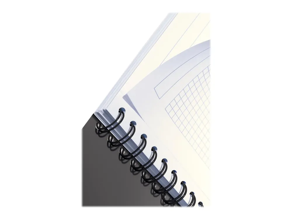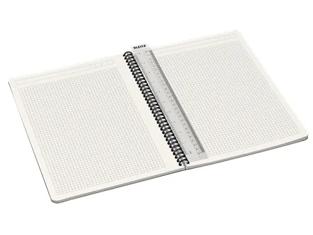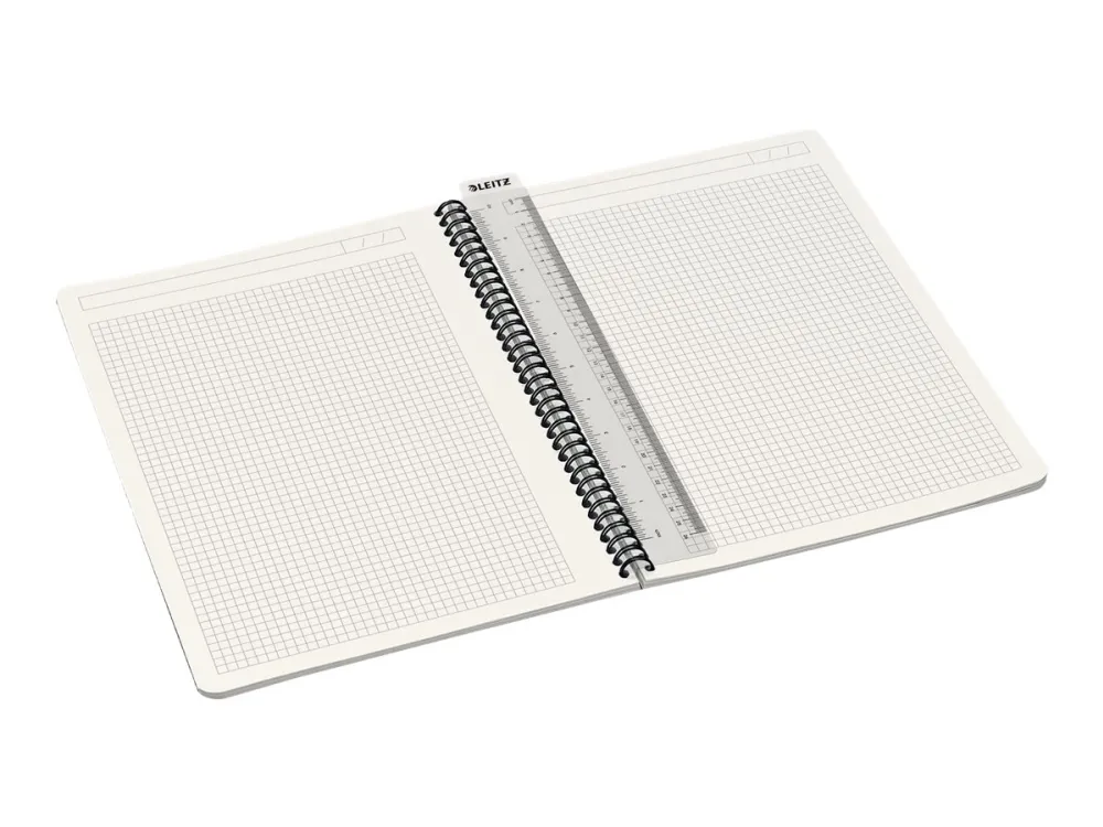The ultimate in everyday notebooks. Each notebook has 90 sheets of top quality 90gsm paper, is wirebound for 360 degree opening and has a laminated cardboard cover.\n\nLightweight but long-lasting flexible laminated cardboard cover \nWire binding allows 360 degree opening of notepad, folded by half it can be used as a board to taking notes on the move \nHigh opacity paper with a special finish creates an easier writing surface with no smearing \nFramed ruling with top title and date line for better organisation of notes \nRemovable ruler that can also be used as bookmark \n90 sheets of A4 FSC® certified 90 gsm paper