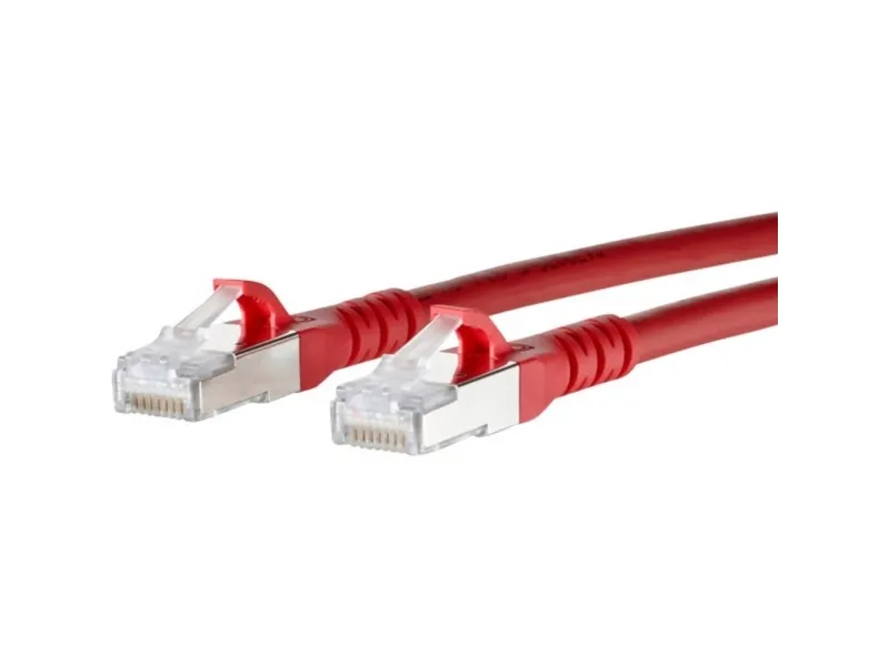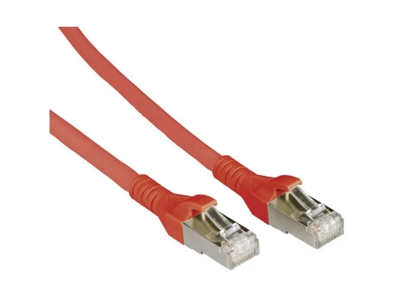 Patchkabel kat.6A AWG 26 0,5 m rød Særligt egnet til uskærmede Class E, A systemskærmede kat.6, A patchkabel AWG 26/7to afskærmede RJ45-stik, kredsløb 1 - 1, kabeltype: S/FTP 4x2xAWG 26/7 PIMF, kabelkappe LSHF(LSOH), halogenfri, Cat.6, A komponenttest iht. ISO/IEC 11801-1 og IEC 61935-2, GHMT certificeret Class E, A link til 500 MHz iht. ISO/11801 din en 50173-1 til 10 Gbit Ethernet (IEEE 802.3an), Remote Powering (PoE, PoE plus og UPoE) og HDBaseT-egnet, knækbeskyttelsestylle med integreret beskyttelse af låsestang, farver kan afvige lidt på grund af deres produktion