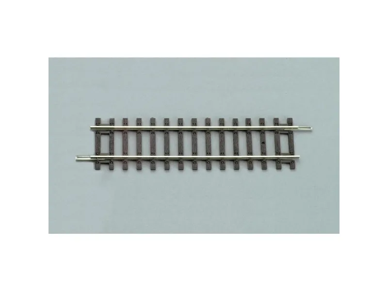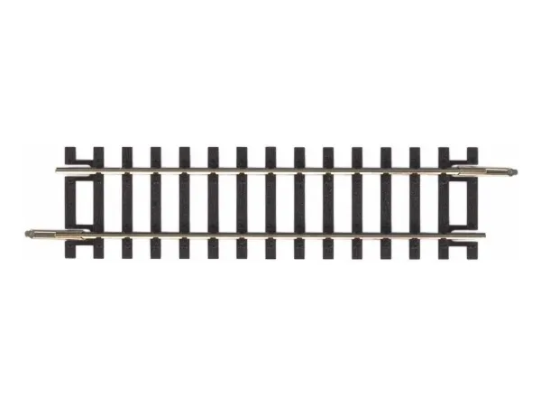 H0 Piko A-spor Det særlige ved PIKO A-sporgeometrien er, at den kan nøjes med ganske få sporelementer, og at modelbanebyggeren hverken ved sporskifter eller kryds skal indbygge udligningsstykker, som altid kan medføre, at modelbanen ikke er jævn. Modullængden på 470 mm opdeles i de lige skinner i to spor med forskellige længder på henholdsvis 231 mm og 239 mm. Dette er hemmeligheden for at kunne køre på parallelspor over to sporskifter uden udligningsstykker. PIKO A-sporprofilen består af en førsteklasses nysølvlegering og er et fuldprofilspor med ideel ledeevne også på lange strækninger. Fjederstålskinnesamlingen sørger for vedvarende og god fastholdelse og sikrer en god strømovergang til skinneforbindelserne. Svellerne fremstilles af højkvalitetsplastmaterialet ABS, som især udmærker sig ved høj slagstyrke, gode lyddæmpningsegenskaber og bestandighed over for spændingsrevner. Profilhøjde 2,5 mm Med nøjagtigt graverede træsveller Slanke skinner i fuld profil
