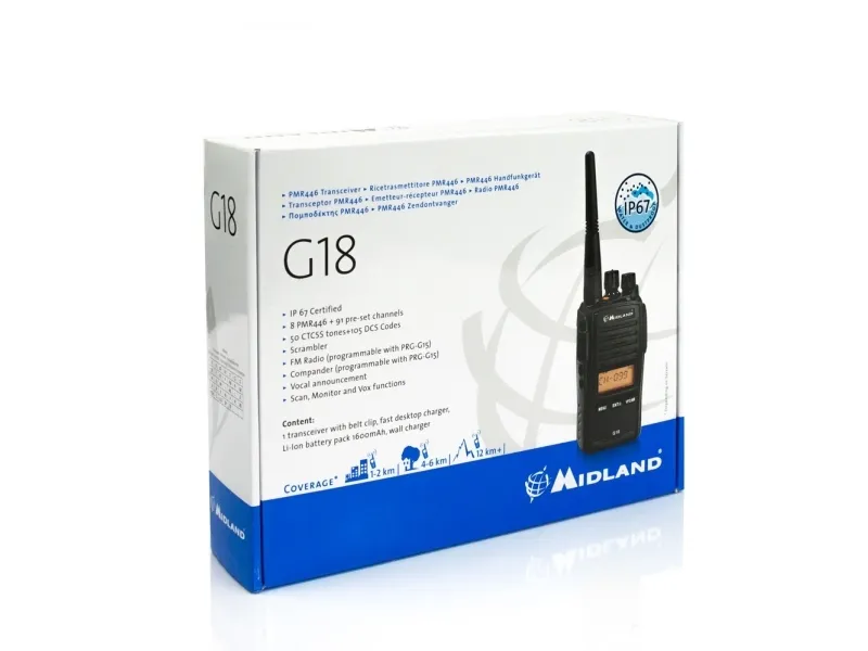 8 kanaler 446.00625 - 446.09375 MHz Ja Ja Lithium-Ion (Li-Ion) Ja Ja IP67 500 mW Ja Svart 240 g 56 x 38 x 113 mm Ja Ja Ja