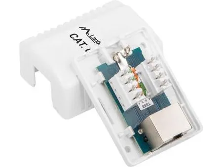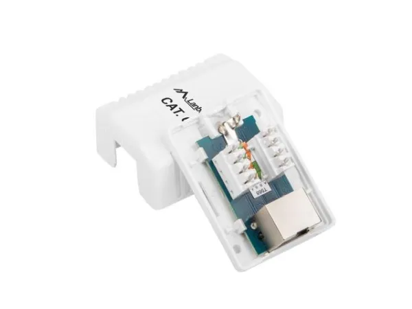 Surface mounted data box is designed for use in high-speed data communication networks. Is a passive part structured cabling used in subscriber's points. Socket is equipped with shielded RJ-45 port category 5e.