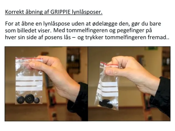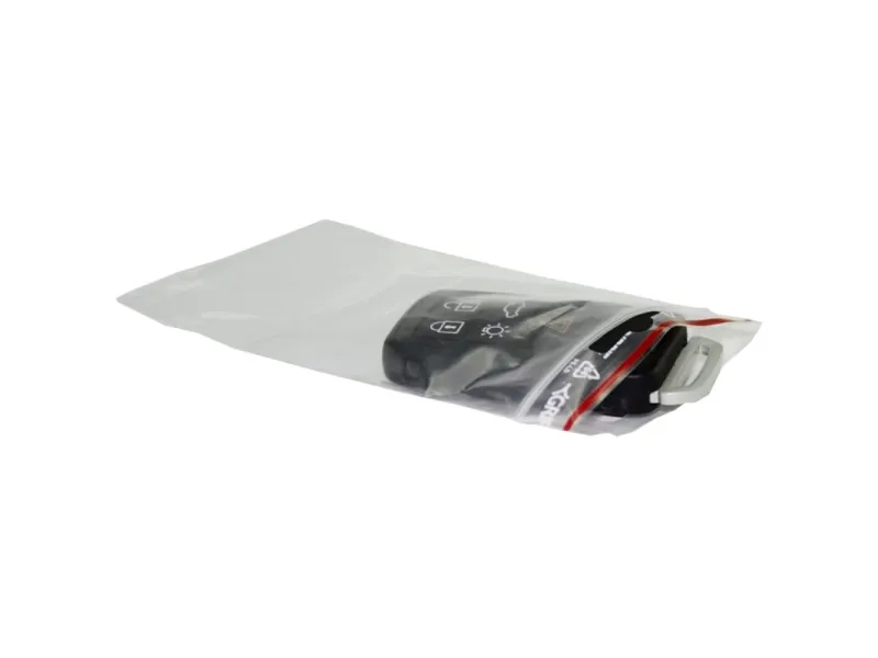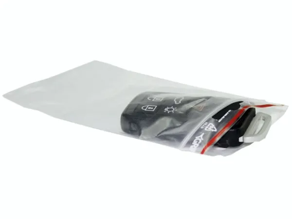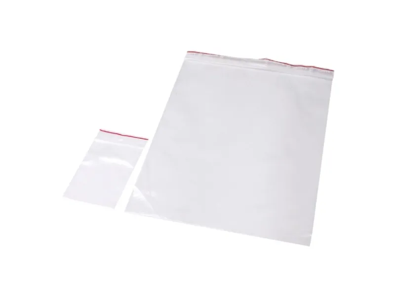 Transparent lynl�spose med et euro oph�ngningshul Posen er godkendt til kontakt med f�devarer. 10 bundter � 100 stk per pakke
