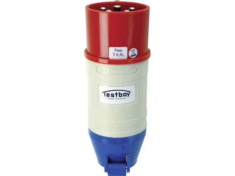 Den Testboy® TV 416a er en kompakt combi-adapter med en 16 A CEE-stik og en stødsikker sokkel med selvlukkende hængslet låg. I forbindelse med Testboy® Testavit Schuki 1, 2, 2K eller 3, kan observeres ledninger fejl på 16 A CEE stik. For 16 A CEE-stik Passer Testboy Testavit Schuki 1, 2, 2K, 3