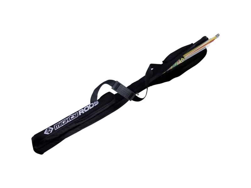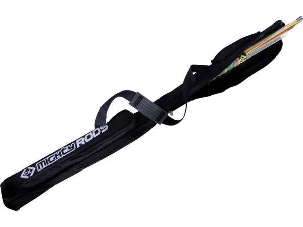 Bæretaske T5450 til MightyRod kabelindtrækningsstænger Robust polyesterkonstruktion med forstærket bund · til opbevaring og transport af kabelindtrækningsstænger med en længde på 1000 mm · to ekstra yderlommer til kortere stænger (330 mm), samt tilbehør · justerbar skulderrem til bedre bærekomfort · mål: 530 x 125 x 60 mm.