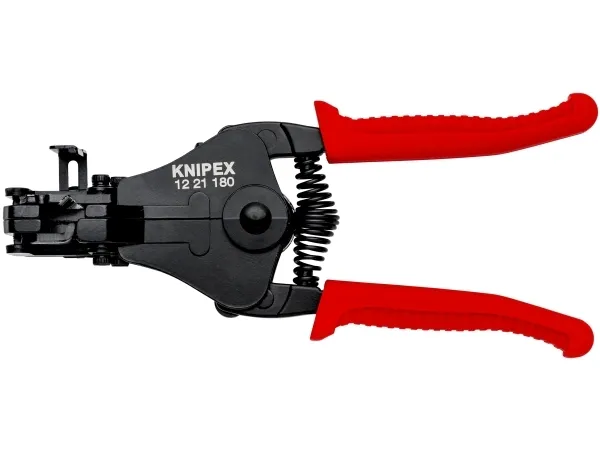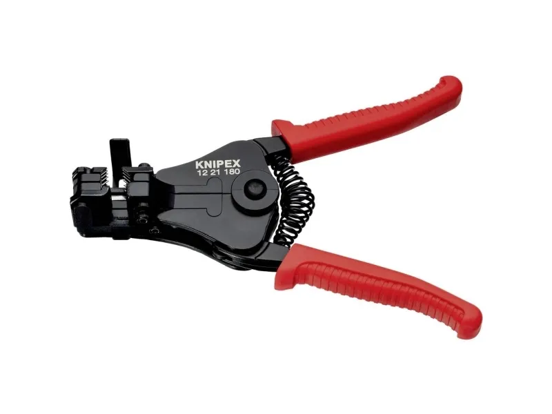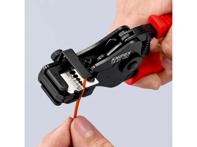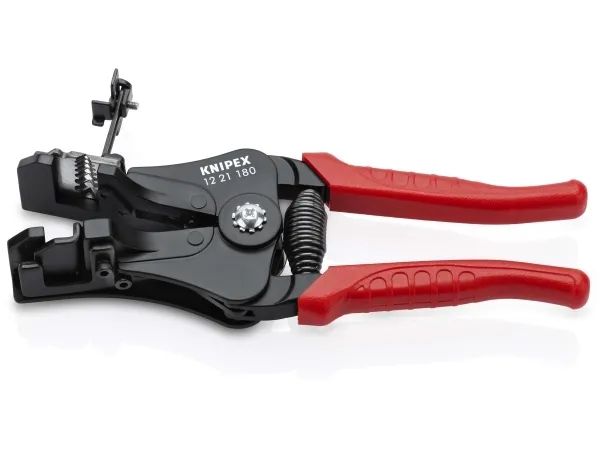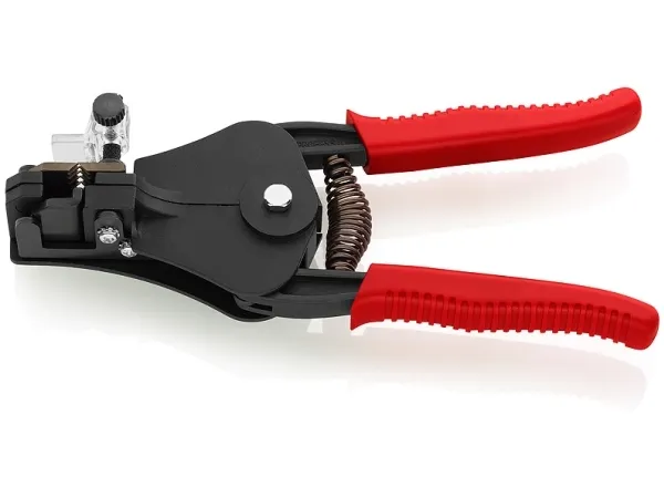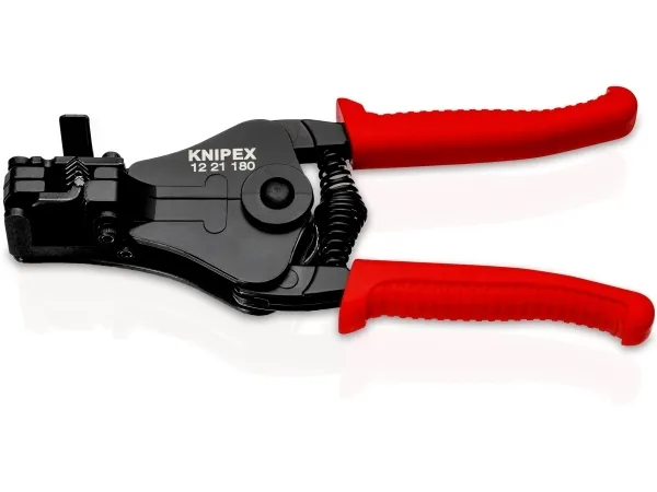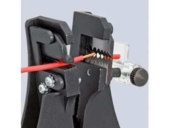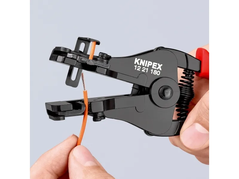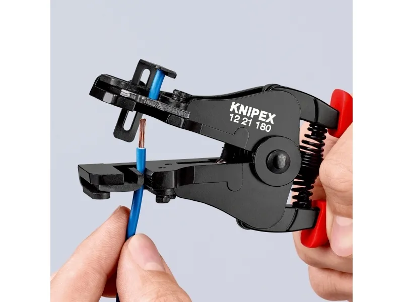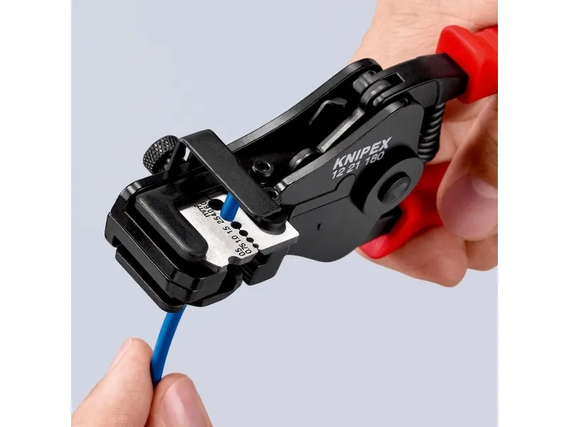 Med udskiftelige knive til fire (afstemt til diameter) eller seks (afstemt til tværsnit) forskellige ledertværsnit. Ingen beskadigelse af lederen på grund af præcist slebne formknive; selv fintrådede litzetråde afisoleres skånsomt. Klemkæber holder tråden fast ved afisoleringen. Med indstilleligt længdeanslag til ens afisoleringslængder ved seriearbejde. En trykfjeder bringer tangen tilbage til udgangsstillingen.