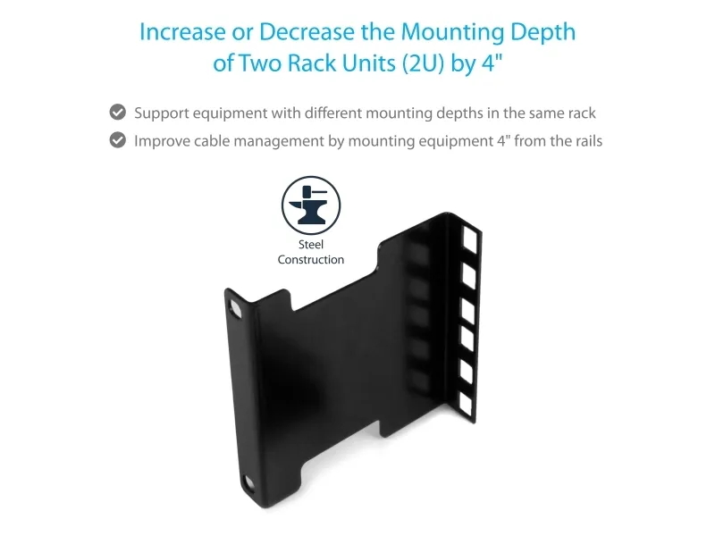 Rail Depth Adapter Kit | Recess or Extend | Universal | TAA Compliant. This server rack depth extender adapter kit extends or reduces the mounting depth of two units (2U) in your server rack by up to four inches. This TAA compliant product adheres to the requirements of the US Federal Trade Agreements Act (TAA), allowing government GSA Schedule purchases.
