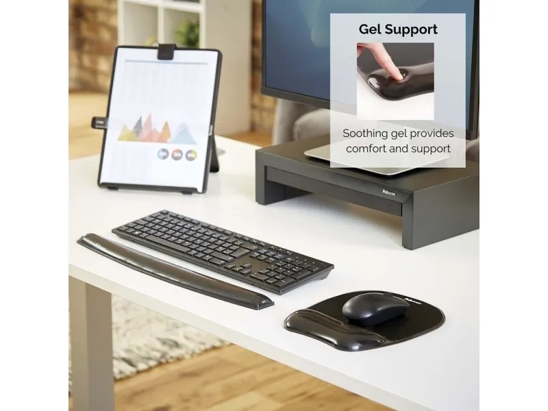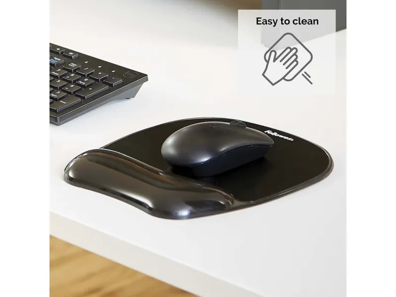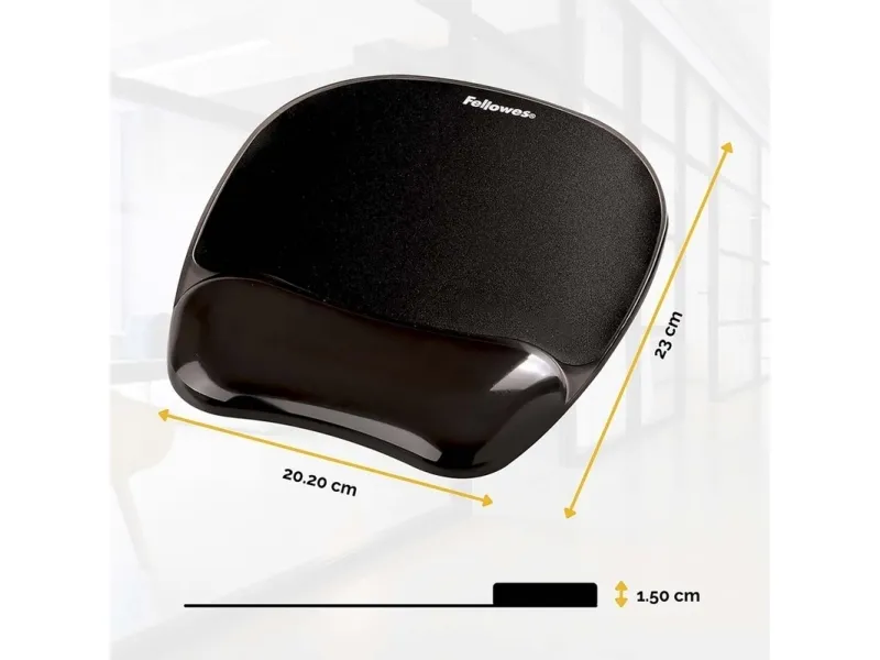 Ergonomic pad conforms to the wrist for all-day comfort. It provides soothing support while redistributing pressure points. Mouse pad provides superior tracking control. Stain resistant; wipes clean with a damp cloth. Non-skid rubber backing keeps pad in place. Stylish, transparent gel adds color to your workspace.