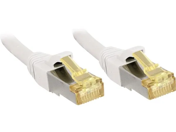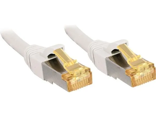 Cat.7 S/FTP LSZH network cable with Cat.6A connectors supports bandwidth up to 600MHz and features a snagless design with gold plated contacts for ethernet standards up to 10 GBase-T.