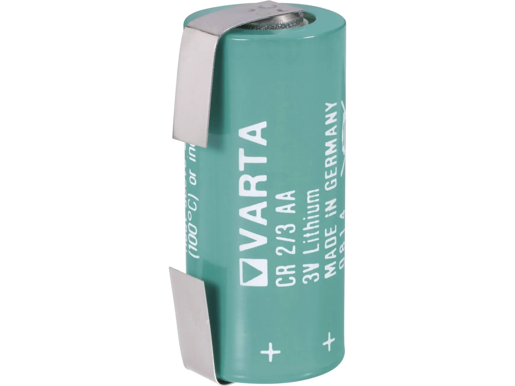 VARTA højtydende litium-specialbatteri CR 2/3 AA SLF med 3 loddestifter ++/- Højtydende Litium-specialbatterier fra Varta med høj temperaturbestandighed. Høj temperaturbestandighed Ydelsesstærk og lang levetid Inkl. stikloddefaner 3'er print ++/-