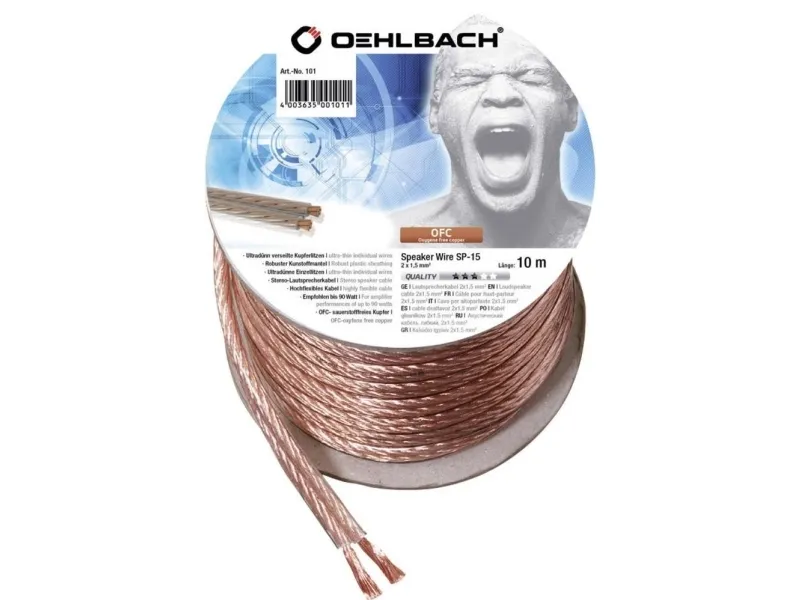 Our Plug & Play solution: valuable speaker cable for hifi systems up to approx. 120 W/channel, on mini spools.