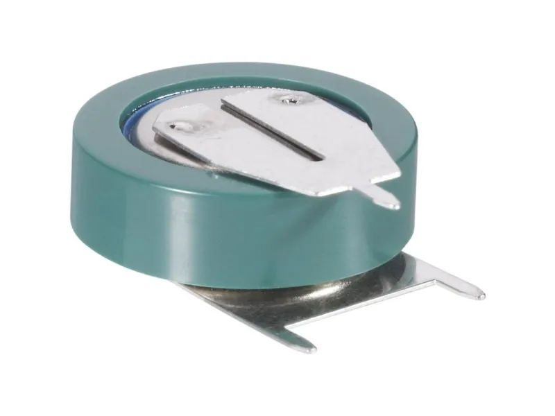 NiMH-knapcelle V80LF Lang levetid · Patenteret GCE-elektrode · Høj energitæthed · UL-godkendelse · Kvalitets-komponenter monteret · Ingen memory-effekt · 0% bly, 0% kviksølv, 0% cadmium · Lille selvafladning · Meget pålidelig · Fremragende opladnings- og afladningsegenskaber · Kompatibel med NiCd-knapceller uden ændring af opladningsteknikken · Opfylder IEC 61951-2 Med plastkappe og loddeben som afleder til printmontering (datasikring). Høj pålidelighed og lang levetid Fremragende opladnings- og afladningsegenskaber UL-godkendelse