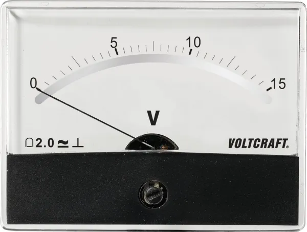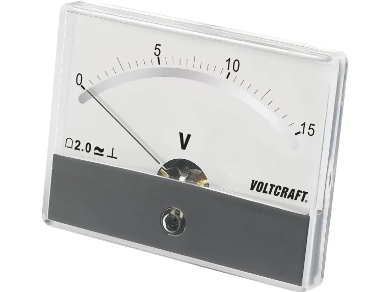 Analogt installationsmåleapparat med drejespole til visning af DC spændinger. Måleren giver en klassisk analog visning, der gør, at vekslende værdier kan aflæses som lineære visningsudslag.