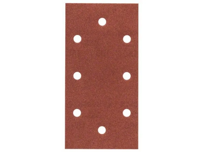 Sandpapir C430, 93 x 186 mm, 2x40, 3x80, 3x120, 2x180, 8 huller, pakke med 10 stk. Slibebladet C430 Expert for Wood and Paint udmærker sig ved sin usædvanligt lange levetid ved slibning af træ-, finer- og hårde træoverflader. Overfladen med elektrostatisk åben streamede slibekorn med definerede mellemrum tillader en ensartet støvudsugning og forhindrer dermed en tilstopning af klingen. Den hårde skornstørrelse er slitagefast og muliggør en længere og gentagen udnyttelse af bladene. Dette produkt er beregnet til slibning og slibning af maling, lak, fyldstoffer, primere og træmaterialer og egnet til slibning fra lak på overflader. Den er også egnet til at slibe bestemte materialer eller afgrate kanter efter befugtning. Slibebladet C430 Expert for Wood and Paint egner sig til rystepudser. Den fuldharpiksbaserede belægning sørger for holdbarhed. Den yderst fleksible C-/B-papirbagside tillader folder uden revner. Bladmål, bredde mm: 93, bladmål, længde mm: 186, bladmål mm: 93x186, kornstørrelse: 2x40; 3x80; 3x120; 2x180