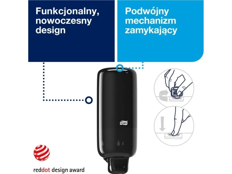 • Certificeret brugervenlig og fremmer god håndhygiejne for alle brugere, også børn og ældre • Certificeret nem rengøring og intuitiv genopfyldning sparer tid • Høj kapacitet og reduceret forbrug på op til 50% sparer tid på vedligeholdelse