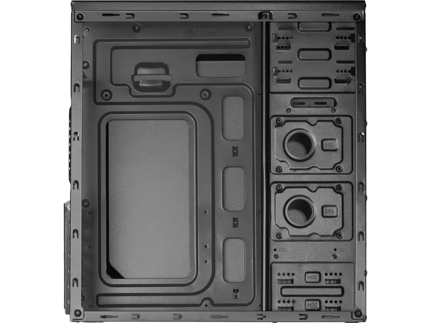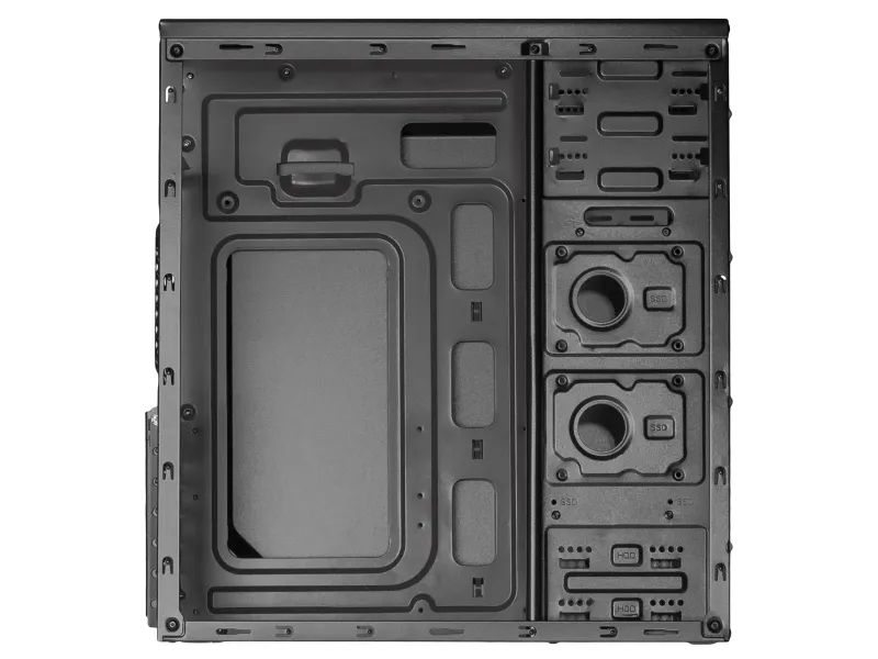 It has been designed with care of high performance and the greatest possible versatility. The casing allows one of four different types of motherboards to be used. In addition to the Micro ATX, Mini ITX and Flex ATX, it is possible to mount a standard ATX motherboard, which is an important asset in adapting the components to changing needs and requirements. The 5.25" external bay located on the top will allow you to mount a CD/DVD drive or burner. Inside there are three 2.5" bays, three 3.5” bays (convertible to 2.5"), and one 5.25” bay, giving a total of 7 bays for mounting disks and drives. The cable management system and customizable internal cutouts facilitate the installation of components, while the spacious interior allows for the installation of graphics cards up to 385 mm long.