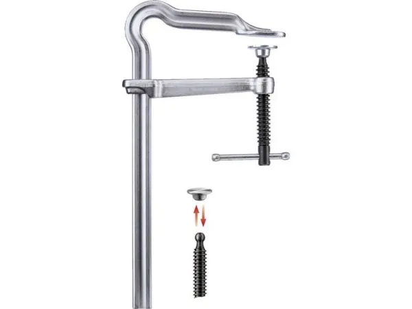 OMEGA-SKRUETVINGE GMZ-K 250/120 Hærdet glide- og fastbøjle til fjedrende og elastisk spænding · Håndtag med afrundede ender til enkel kraftoverførsel ved tilspænding · Værktøjsfri udskiftelige trykplader · Universel anvendelse inden for træ- og metalbearbejdning
