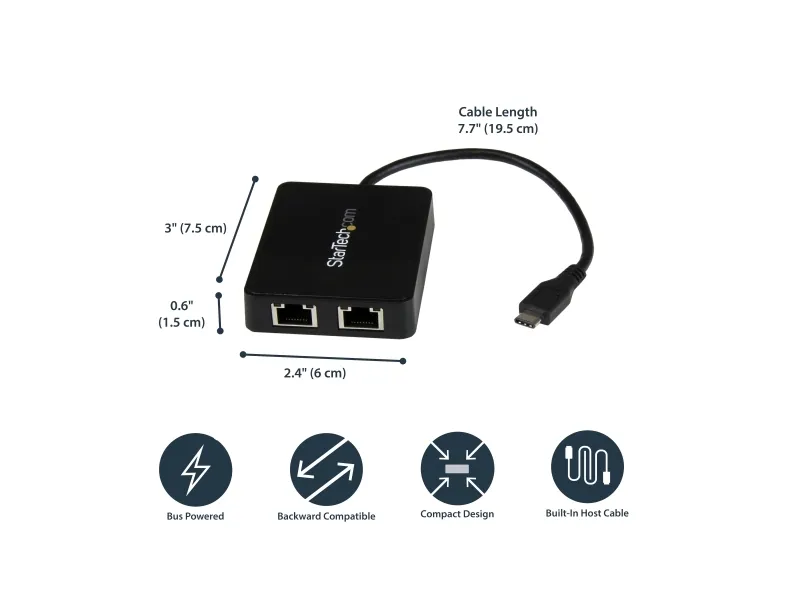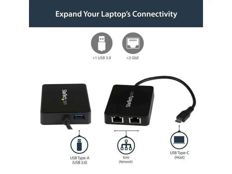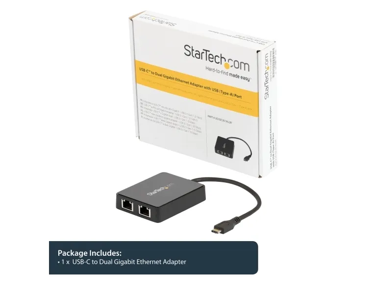 StarTech.com USB-C to Dual Gigabit Ethernet Adapter with USB 3.0 (Type-A) Port - USB Type-C Gigabit Network Adapter (US1GC301AU2R) - nettverksadapter - USB-C - Gigabit Ethernet x 2 + USB 3.0