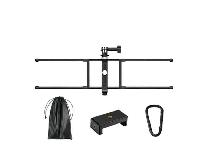 Additional accessories have been included to make the use of the handle more comfortable. Among other things, in the box you will find a leather pouch, into which you can hide, for example, a powerbank and thus conveniently charge your camera, placed on the fence. An additional adapter and clip will make it possible for you to use TELESIN equally for cameras, panoramic cameras or phones. This makes the mount very versatile and practical.