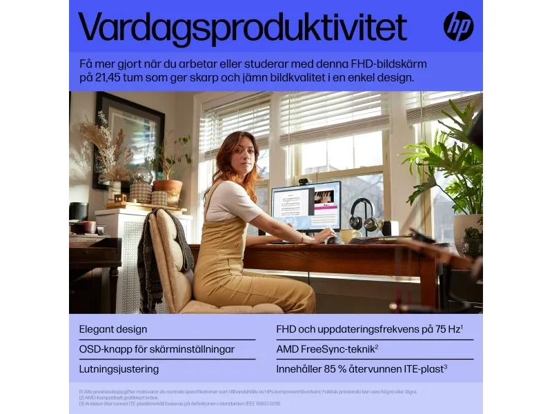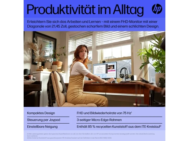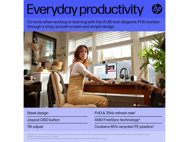 Do more when working or learning with this 21.45-inch diagonal, FHD monitor through a crisp, smooth screen and simple design.