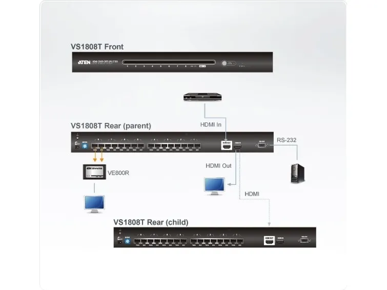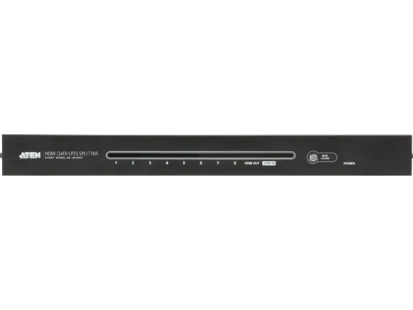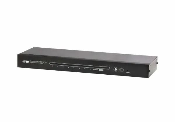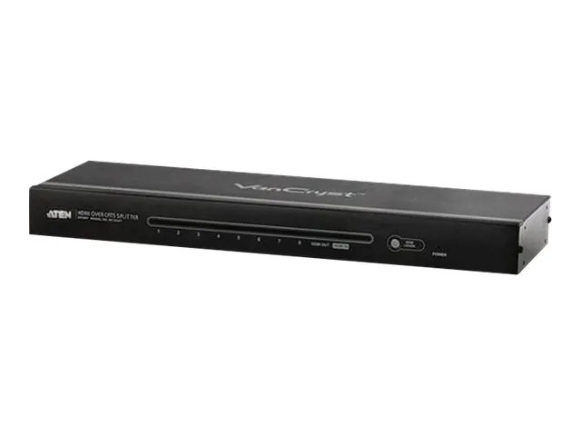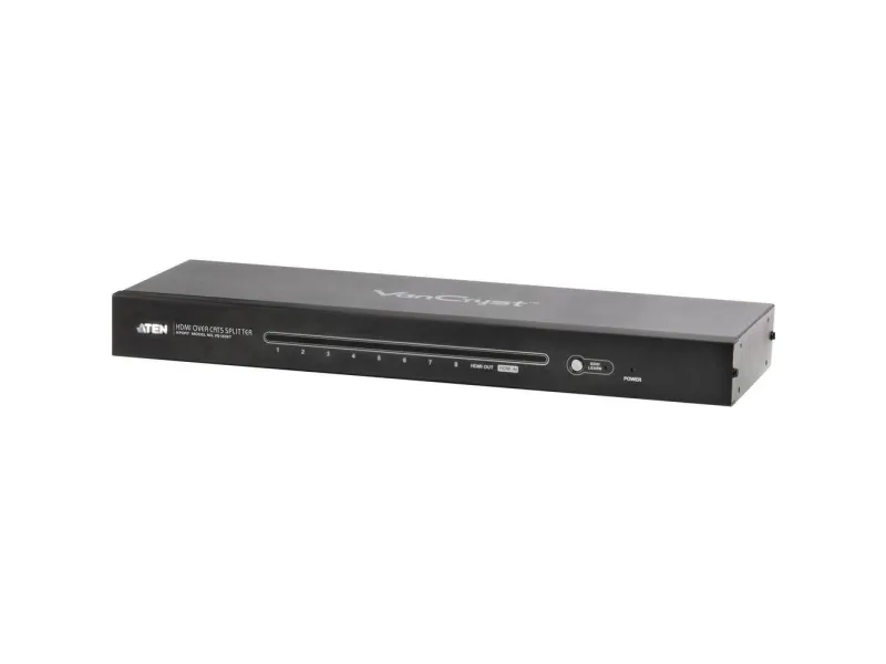 The ATEN VS1808T HDMI Over Cat 5 Splitter is a quick and efficient way to move HDMI multimedia content and HDCP information from input source to 8 displays.