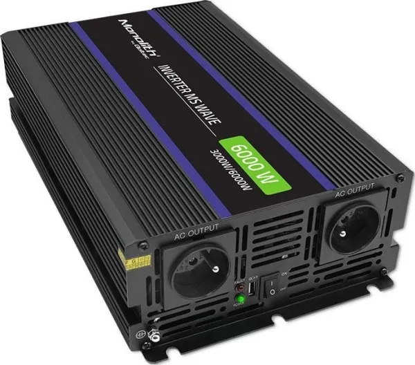 Qoltec Monolith 6000 MS Wave spenningsomformer | 12V til 230V | 3000/6000W | USB