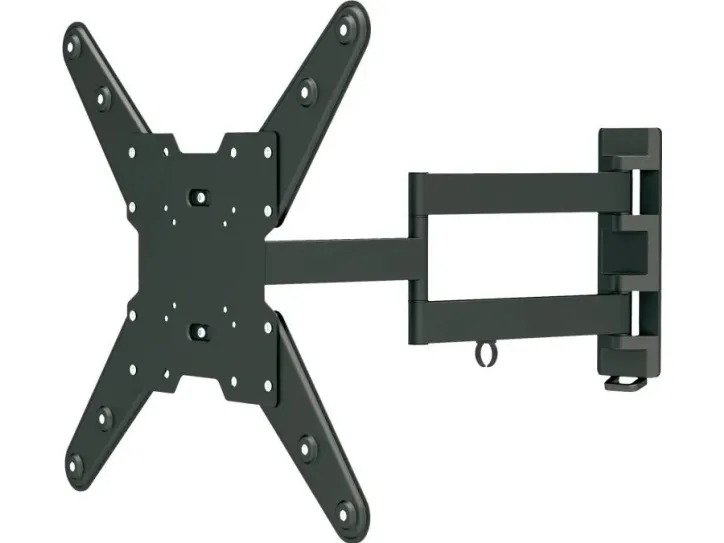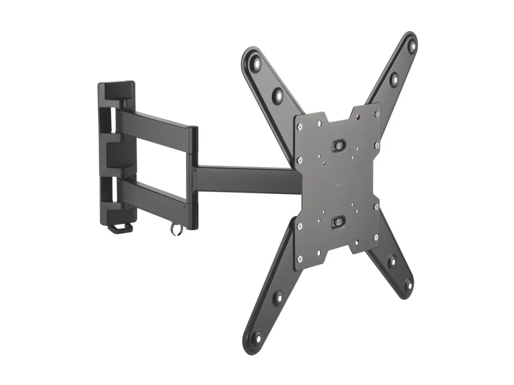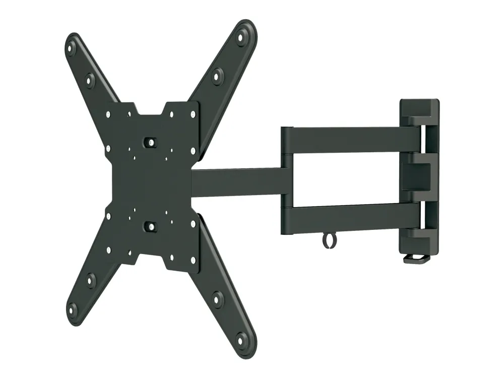 Veggfeste med treleddet arm som gjør at den kan røres i både sideledd og i dybden. På veggplaten og på armen fins kroker som holder orden på kablene. Festeplaten for skjermen er modulær noe som gjør at festet passer like bra for en liten skjerm som for en stor uten at noe stikker ut på sidene.