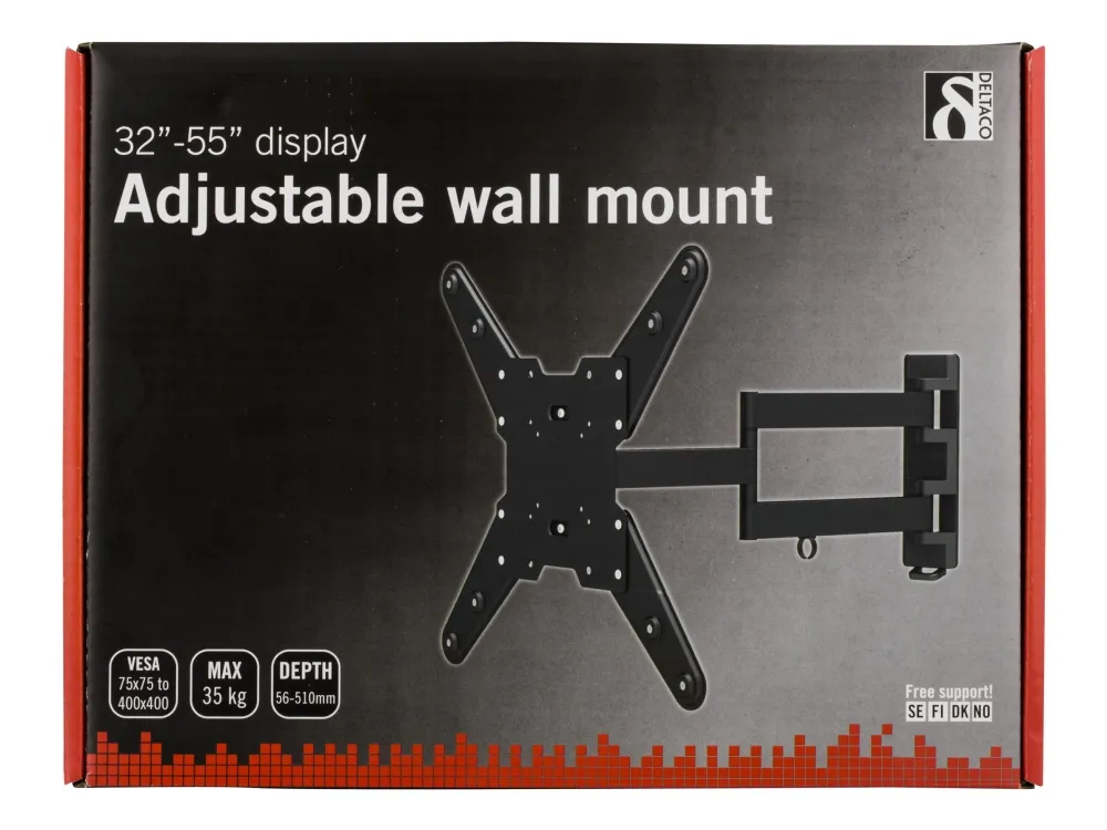 DELTACO ARM-425 - Monteringssett (veggmontering) - for TV - svart - monteringsgrensesnitt: 75 x 75 mm - veggmonterbar