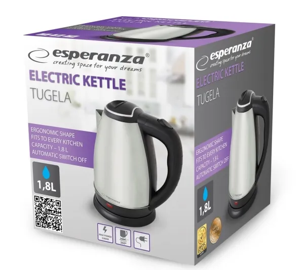 Modern and elegant kettle made of stainless steel. Ergonomic design and functionality apply at any time of the day and in every interior. Equipped with a convenient, built-in heating element. Easy putting the kettle on the base. Cool-touch handle for high comfort of use.