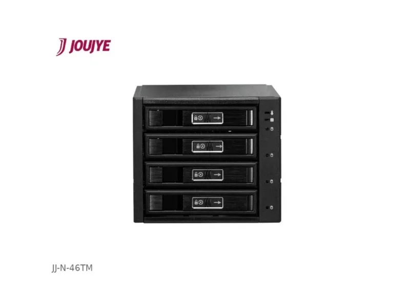 ÅÅ-N-46TM til 4 x 6,4 cm (2,5)/8,9 cm (3,5) 12G HDD/SSD 4 x 7-polet SATA tilslutning 2 x 15-pin strømtilslutning 1 x nøglesæt (2 stk.) Det førsteklasses forarbejdede aluminiumskabinet understøtter SATA3/SAS3 med op til 12 Gbps til 4 x 6,4 cm/8,9 cm 2,5 tommer/3,5 HDD/SSD. Udviklingen af EMC-jordingskonceptet er blevet udviklet med stor omhu. Kontaktfjedre af rustfrit stål undgår elektromagnetiske felter, absorberer mekaniske vibrationer og leder de elektromagnetiske forstyrrelser væk til rammen og er jordforbundet med apparatet. Takket være trays anti-vibrationsanordning sikres en støjsvag drift, da skinner i rustfrit stål er udstyret med støddæmpere. JJ-N-46TM er den ideelle løsning til op til fire 8,9 cm (3,5) eller 6,4 cm (2,5) SATA i, II, III eller SAS i, II, III harddisk i tre 13.3 cm (5,25) indbygningsskakt til dataoverførselshastigheder på op til 12 GB/s (SAS3). Du får dobbelt sikkerhed med metallås og en skydbesluttet.