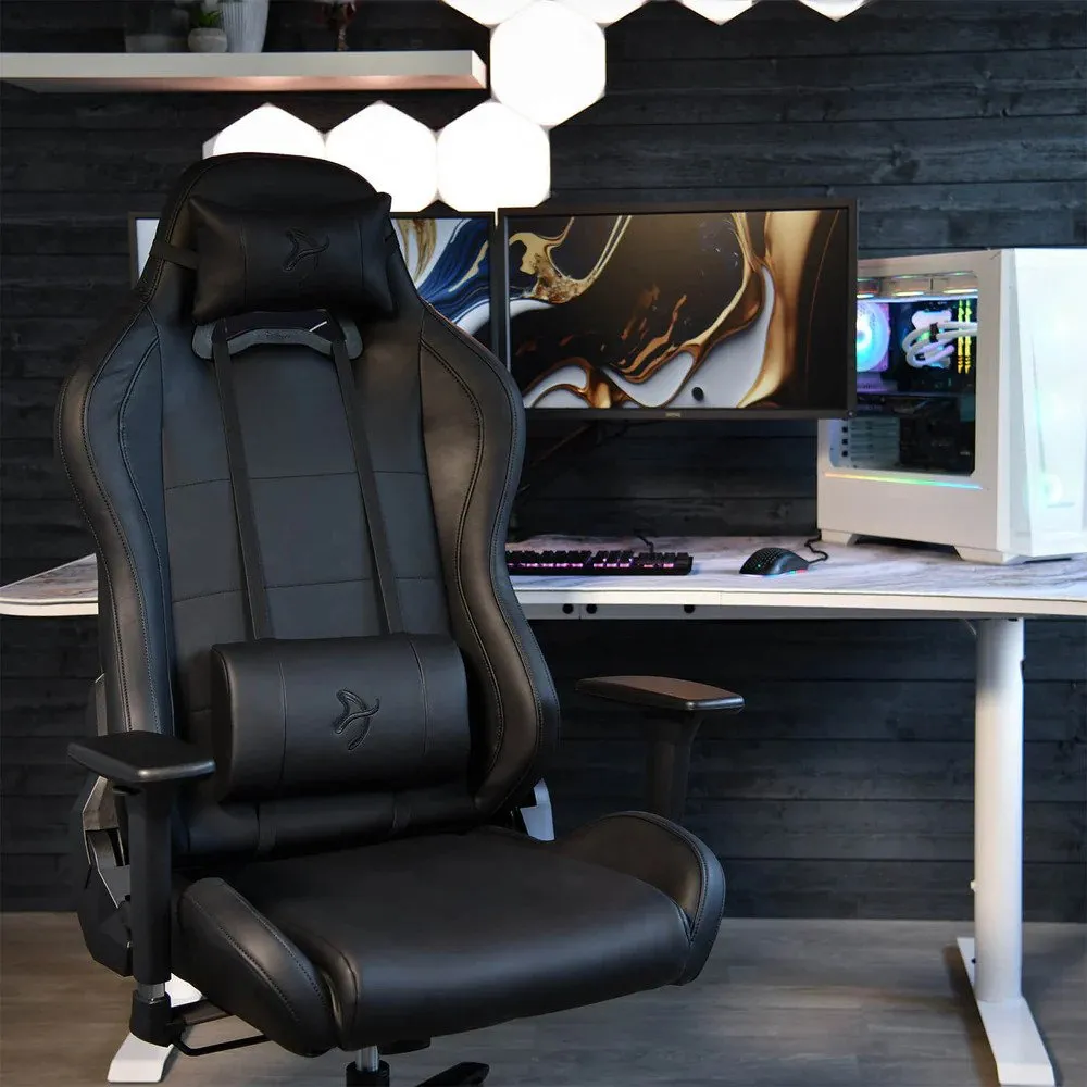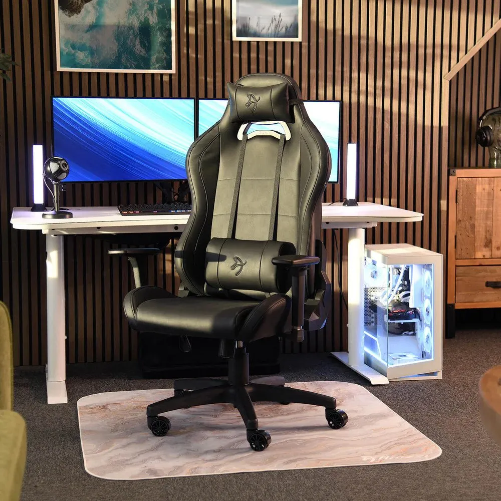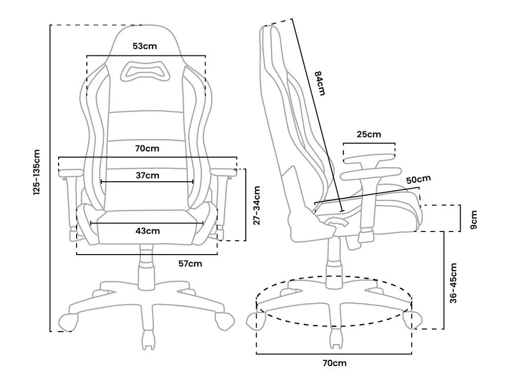 Den leveres med to justerbare puter – en korsryggpute for ryggen og en nakkestøtte for nakke og hode.