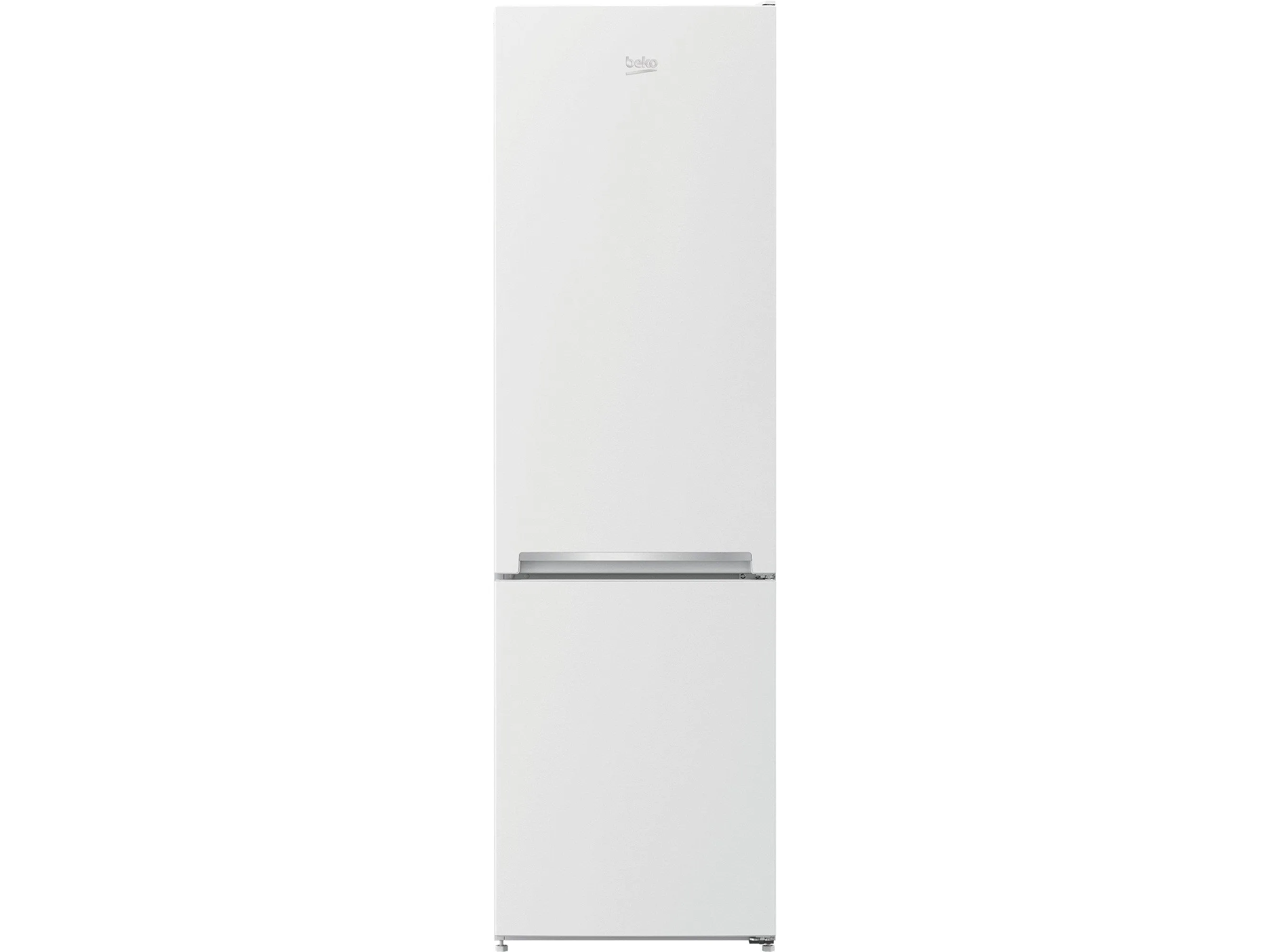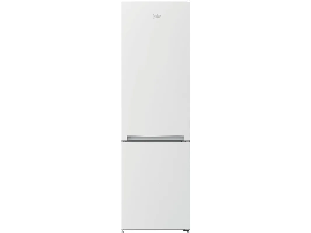 Discover the Beko RCSA300K40WN, a refrigerator/freezer designed for modern living. With its Class E energy efficiency, it offers an eco-friendly solution to food preservation, consuming only 227 kWh per year. The appliance boasts a generous 291-liter total net capacity, split between a 204-liter refrigeration section and an 87-liter freezer, making it perfect for households that value both space and organization. The freezer is equipped with two drawers and a shelf, providing versatile storage options for frozen goods, while the refrigerator features adjustable safety glass shelves, door compartments, and a drawer for fresh produce. LED interior lighting illuminates the contents, making it easy to find what you need, and the quiet 35 dB(A) operation means it won't interrupt your home life. With features like reversible doors and integrated handles, this Beko refrigerator/freezer combines functionality with style, making it an ideal choice for any kitchen.