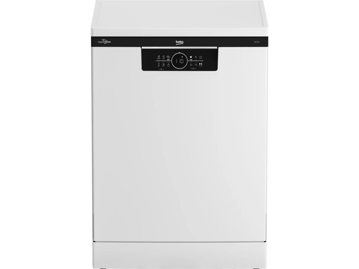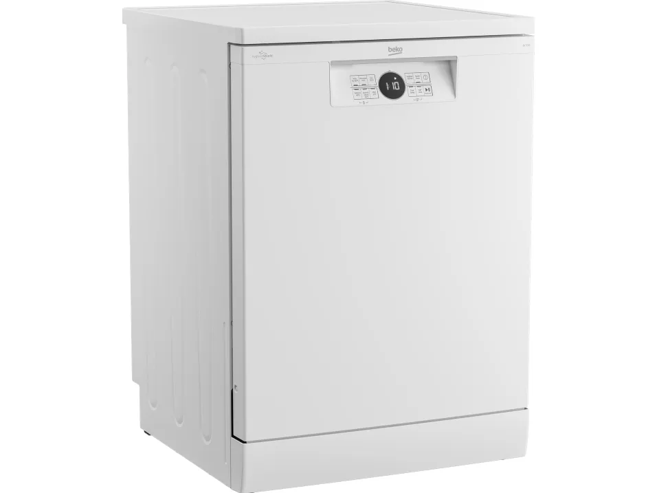 Beko BDFN26530W. Appliance placement: Freestanding, Product size: Full size (60 cm), Door colour: White. Number of place settings: 15 place settings, Noise emission class: B, Noise level: 44 dB. Energy efficiency class: D, Water consumption per cycle: 9.9 L, Energy consumption per cycle: 0.861 kWh. Width: 600 mm, Depth: 600 mm, Height: 850 mm. Package width: 644 mm, Package depth: 661 mm, Package height: 889 mm