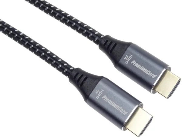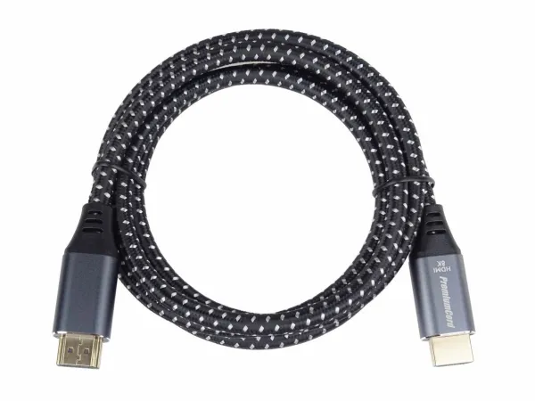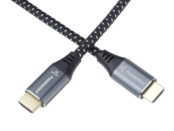 Top ULTRA HDMI 2.1 connection cable for the highest resolution 8K@60Hz and 4K@120Hz with metal aluminium connector caps, flexible cable for the most demanding applications. The cable is multi-shielded, can transmit digital audio and video, and supports digital protection of HDCP content. In addition, the cable has integrated high-speed Ethernet transmission.PremiumCord KPHDM21S05. Cable length: 0.5 m, Connector 1: HDMI Type A (Standard), Connector 1 gender: Male, Connector 2: HDMI Type A (Standard), Connector 2 gender: Male, Connector contacts plating: Gold, HDMI version: 2.1, 3D, Data transfer rate: 48 Gbit/s, Audio Return Channel (ARC), Product colour: Black