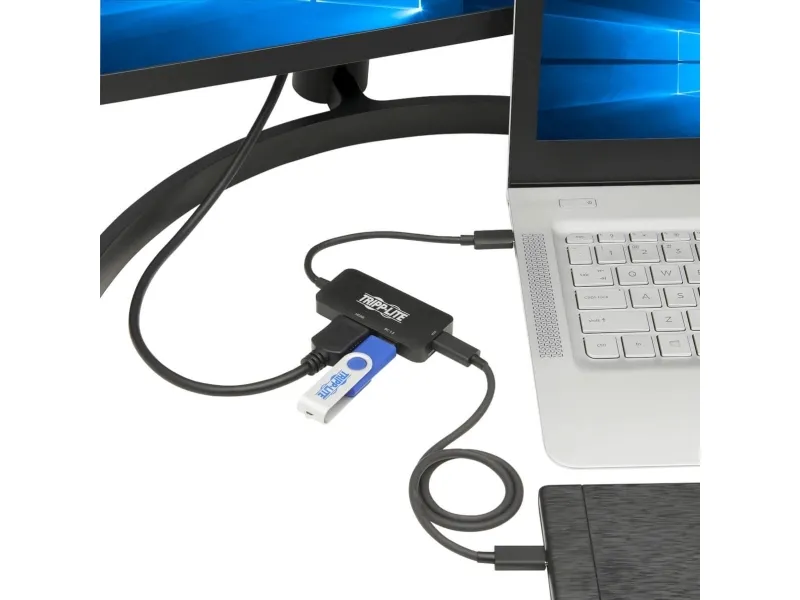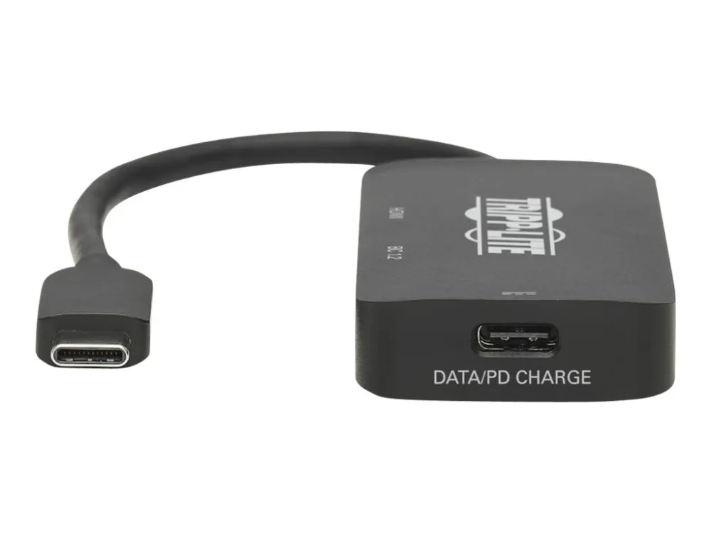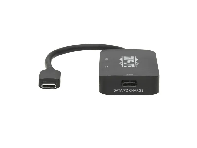 This 4K adapter turns the USB-C or Thunderbolt 3 port on your tablet, laptop, Chromebook, MacBook, smartphone or PC into multiple ports. It's ideal for transmitting digital audio and 4K video to a large display, adding a thumb drive or other USB peripheral, and powering and charging a PD Charging-compliant mobile device - all at the same time. It's an ideal tool for working in high-definition photography, videography or cinematography, as well as streaming video for digital signage in crystal-clear 4K.