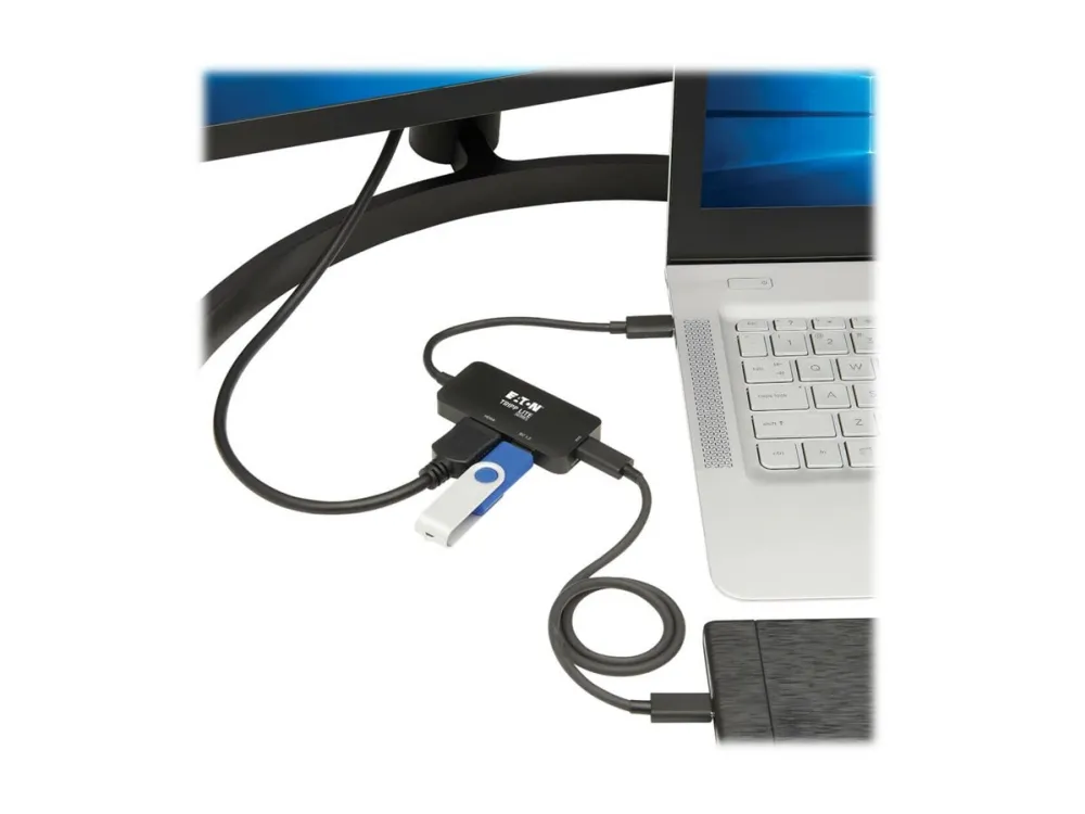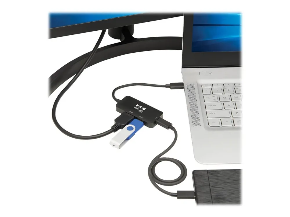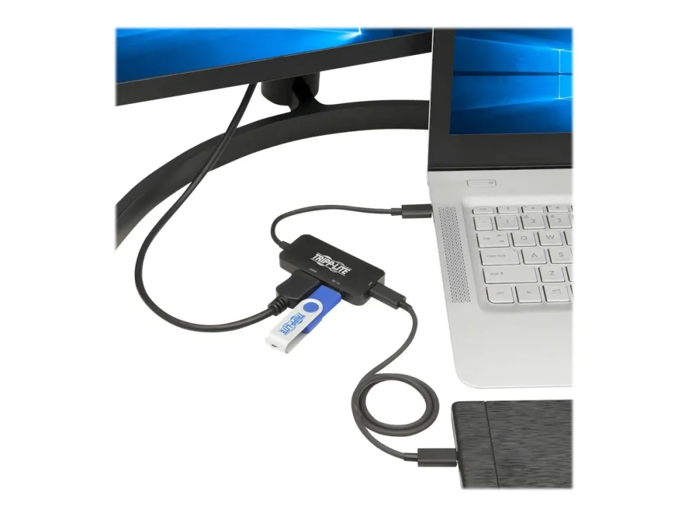 The plug-and-play USB 3.1 Type-C adapter is specifically designed for the MacBook, Google Chromebook Pixel and other laptops, tablets and devices equipped with a USB-C or Thunderbolt 3 port. It requires no software, drivers or external power. About the size of a credit card, the U444-06N-H4UBC2 fits easily into a pocket, purse or laptop bag for convenient connections on the go.